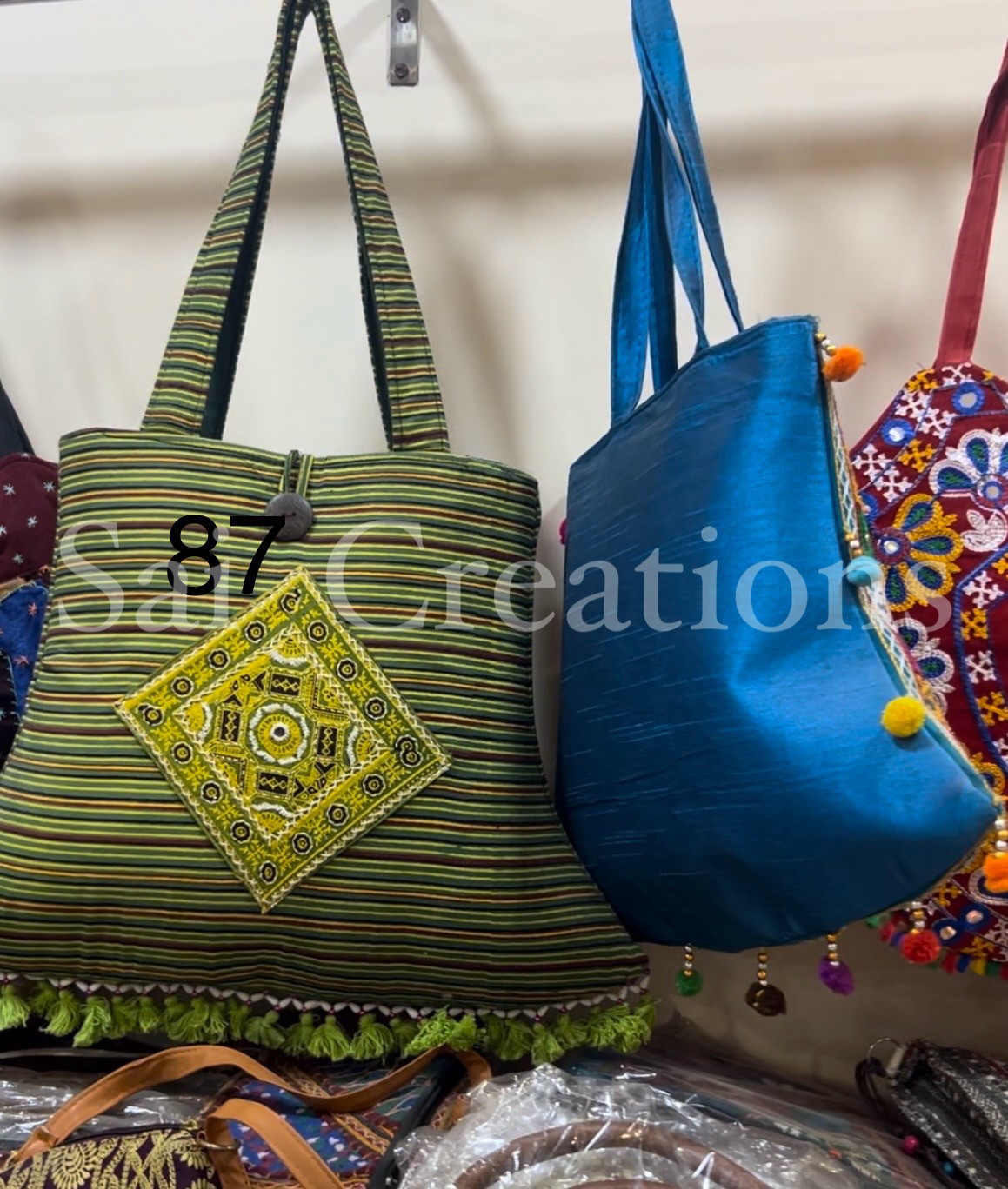 Hand embroidered rich Indian Heritage Boho TOtes and slings Large and spacious enough to carry your essentials beautiful and cl-assy with inner linings and internal pockets broad belts for your comfort each piece is made with love and antique work and patchworks one of its kind no two pieces are same and highlights its beauty and uniqueness